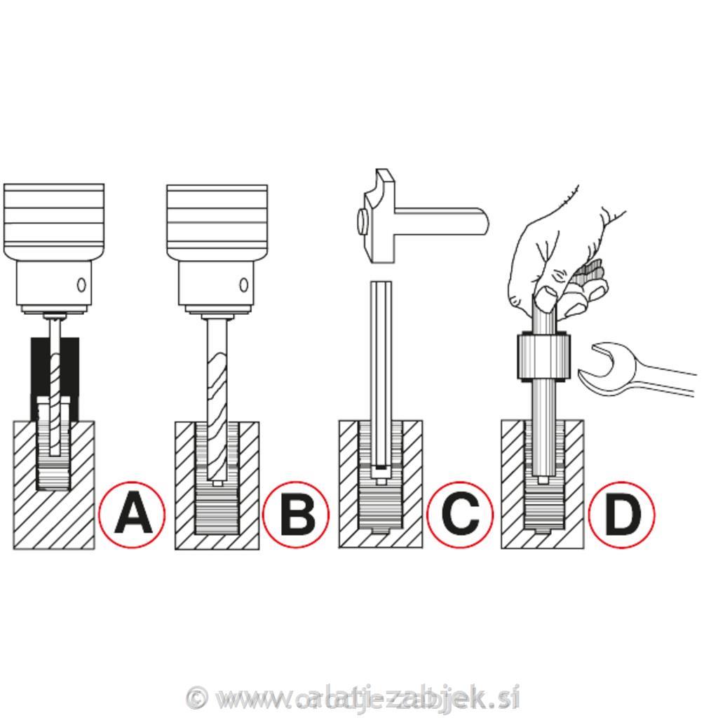 - za odstranjevanje prelomljenih navojnih sornikov in vijakov