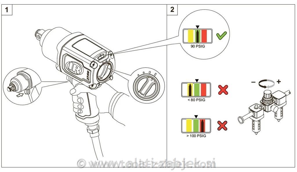 - Uporaba ključa pri optimalni ravni tlaka podaljša življenjsko dobo orodja in vam prihrani denar