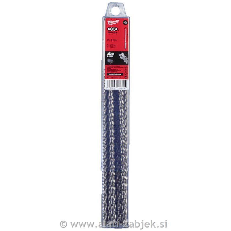 MX4 SDS-Plus set svedrov za beton fi 8mm 265mm 10 kos MILWAUKEE