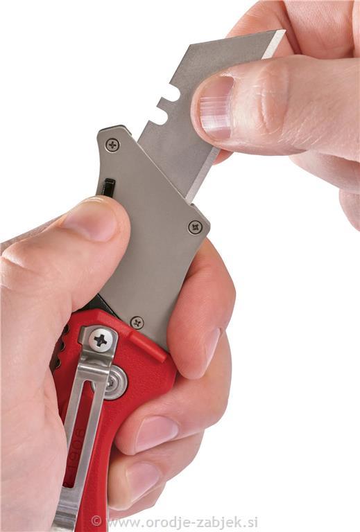 Opis proizvoda - menjava rezila brez orodja omogoča uporabniku hitro in enostavno vstavljanje novega rezila - kompaktna in lahka zasnova omogoča enostavno prenašanje v žepu uporabnika - sponka za pas za enostavno shranjevanje - luknja za vrvico za zaščito pred izgubo - sprejema standardna rezila