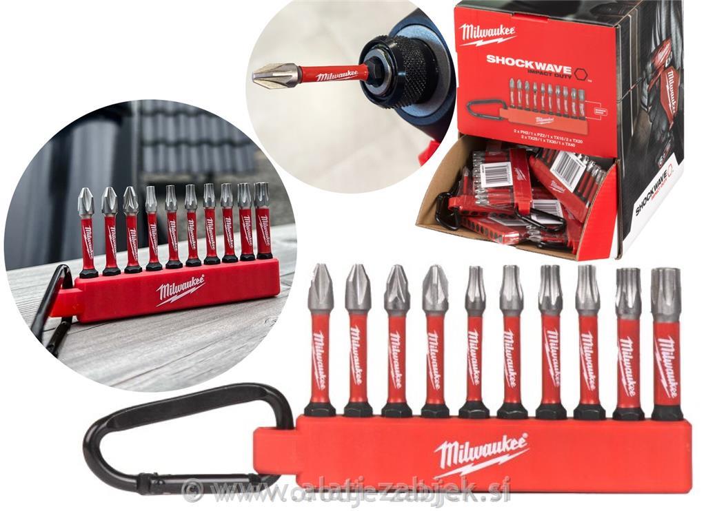 Bit nastavci Shockwave s karabinerom 10kom MILWAUKEE