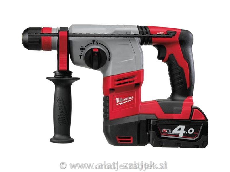- Akumulatorsko vrtalno kladivo HD18 HX-402C, polnilnik, 2 x akumulatorja 4,0 Ah Redlithium-Ion, stranski ročaj s kovinskim globinskim omejilom in kovček