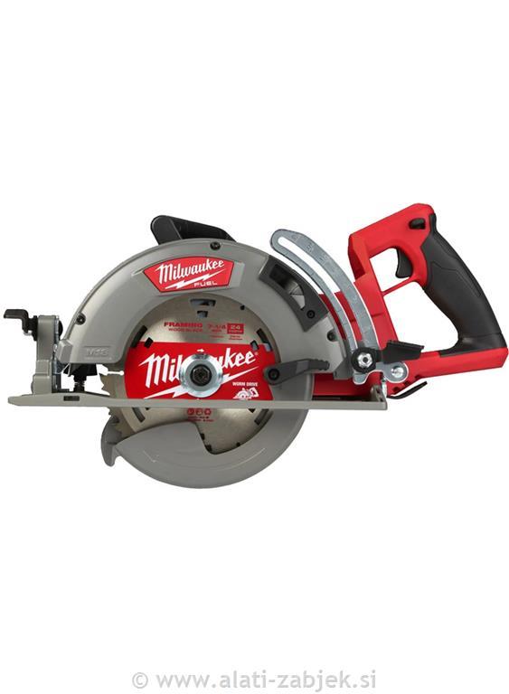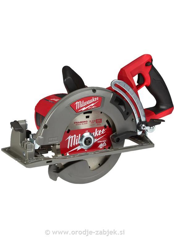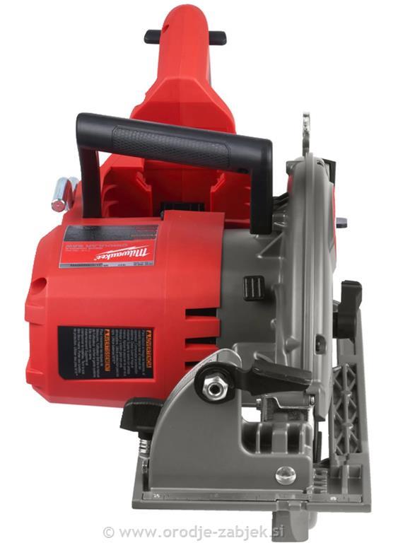 Krožna žaga z zadnjim ročajem in z rezilom na levi omogoča uporabniku odlično vidljivost linije reza
