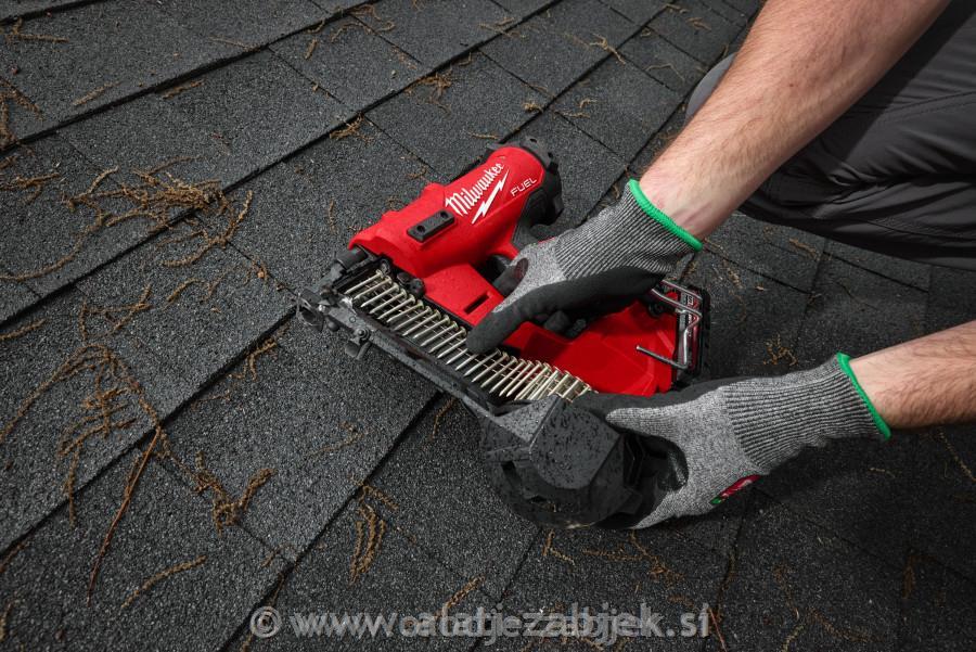 - M18 FUEL™ kolutni žebljar za strešne kritine prinaša inovacijo za strešne in zunanje izvajalce s povečano zmogljivostjo in najboljšim časom delovanja v svojem razredu.