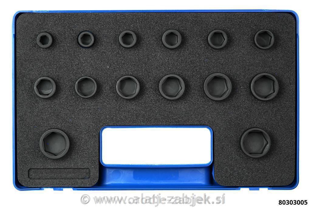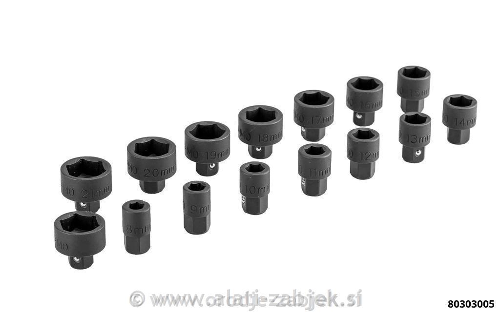 - nasadni ključi dimenzij: 8, 9, 10, 11, 12, 13, 14, 15, 16, 17, 18, 19, 20, 21 mm x 14 mm