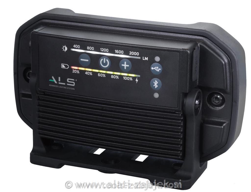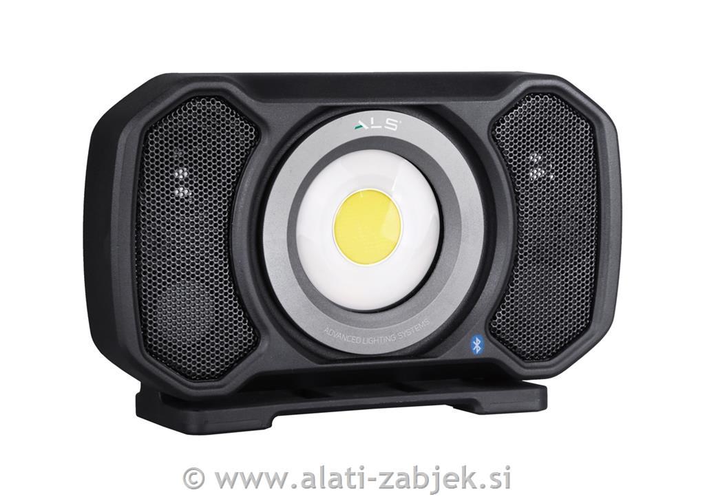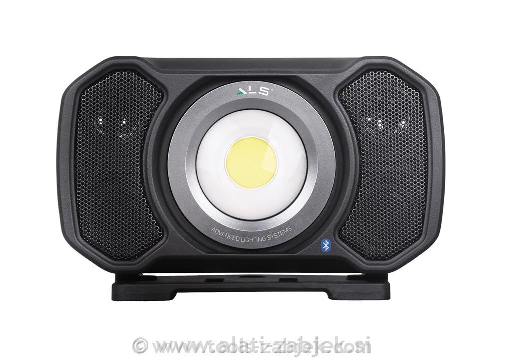Svetilke AUDIO LIGHT so zelo trpežne delovne luči z vgrajenim kakovostnim zvočnikom za maksimalno delovno učinkovitost in "zabavo" pri delu. AUDIO LIGHT združuje glasbo in svetlobo. AUDIO LIGHT AUD601R je robustna delovna luč v obliki ročne svetilke z integriranim zvočnikom. Visoko intenzivna kombinirana delovna luč ima vrtljivi nosilec z vgrajenim magnetom za montažo na magnetne površine in za nastavitev le teh. AUDIO LIGHT AUD601R je opremljen z 2 svetlobnima tehnologijama za še učinkovitejše delo. Zvok pri sami luči je zelo velik za tako majhno napravo, glasnost je mogoče nadzorovati prek mobilnega telefona. Svetilka COB se v temnem stanju v ozadju obarva zeleno, kar omogoča hitro iskanje svetlobne lučke.