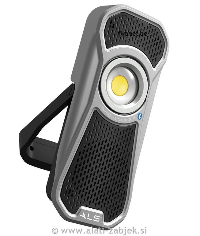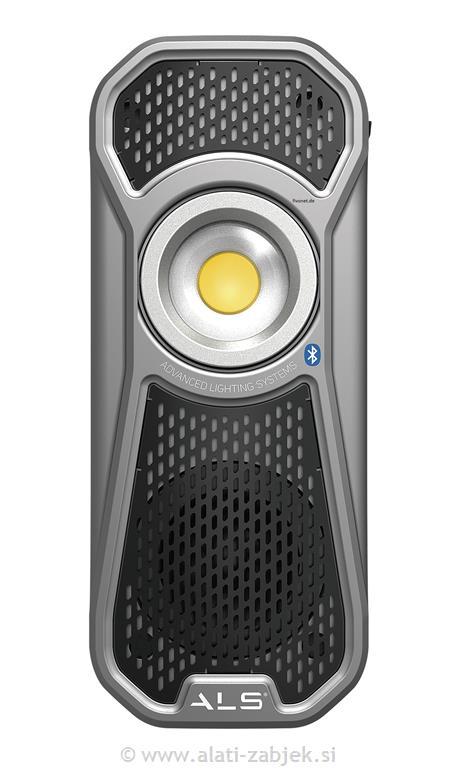 Svetilke AUDIO LIGHT so zelo trpežne delovne luči z vgrajenim kakovostnim zvočnikom za maksimalno delovno učinkovitost in "zabavo" pri delu. AUDIO LIGHT združuje glasbo in svetlobo. AUDIO LIGHT AUD601R je robustna delovna luč v obliki ročne svetilke z integriranim zvočnikom. Visoko intenzivna kombinirana delovna luč ima vrtljivi nosilec z vgrajenim magnetom za montažo na magnetne površine in za nastavitev le teh. AUDIO LIGHT AUD601R je opremljen z 2 svetlobnima tehnologijama za še učinkovitejše delo. Zvok pri sami luči je zelo velik za tako majhno napravo, glasnost je mogoče nadzorovati prek mobilnega telefona. Svetilka COB se v temnem stanju v ozadju obarva zeleno, kar omogoča hitro iskanje svetlobne lučke.