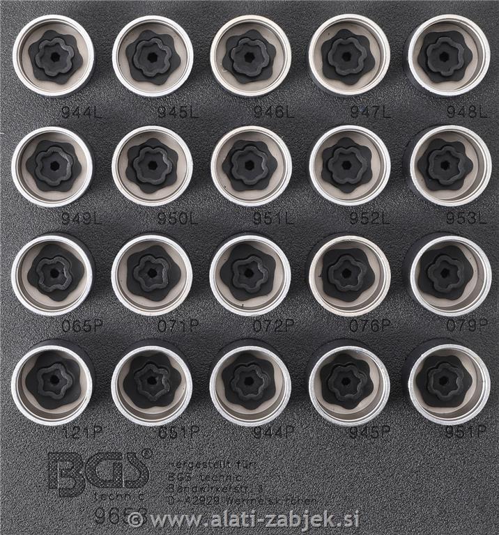 - 20 vtičnic za zaklepanje platišč v velikostih: