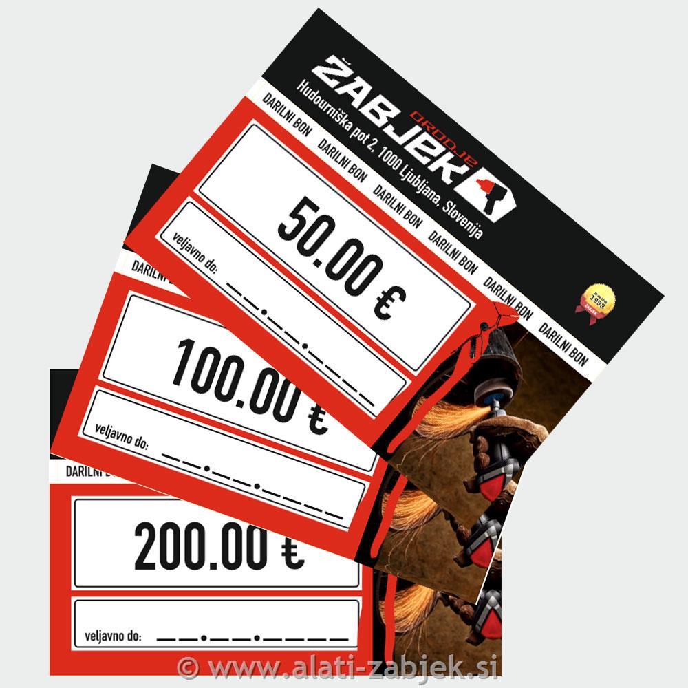 Z njim si lahko izbere iz široke palete profesionalnega orodja in opreme za delavnico. Na voljo so boni v vrednosti 50€, 100€ ali 200€, ki veljajo 12 mesecev od dneva nakupa. Če želite, lahko navedete želen datum veljavnosti v komentarju pri oddaji naročila, vendar največ 13 mesecev od dneva nakupa.