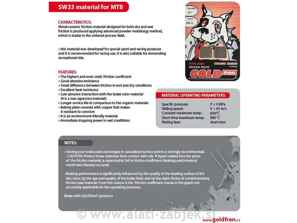 Zmes SW33 je bila razvita specialno za šport in tekmovalne namene. Primerna je za uporabo v tekmovalne namene in zahtevno rekreacijsko vožnjo.