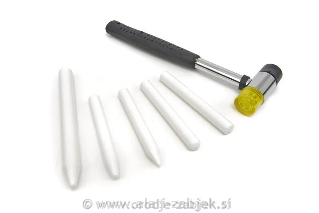 – V kompletu so različni dodatki in kladivo za natančno ter nežno delo