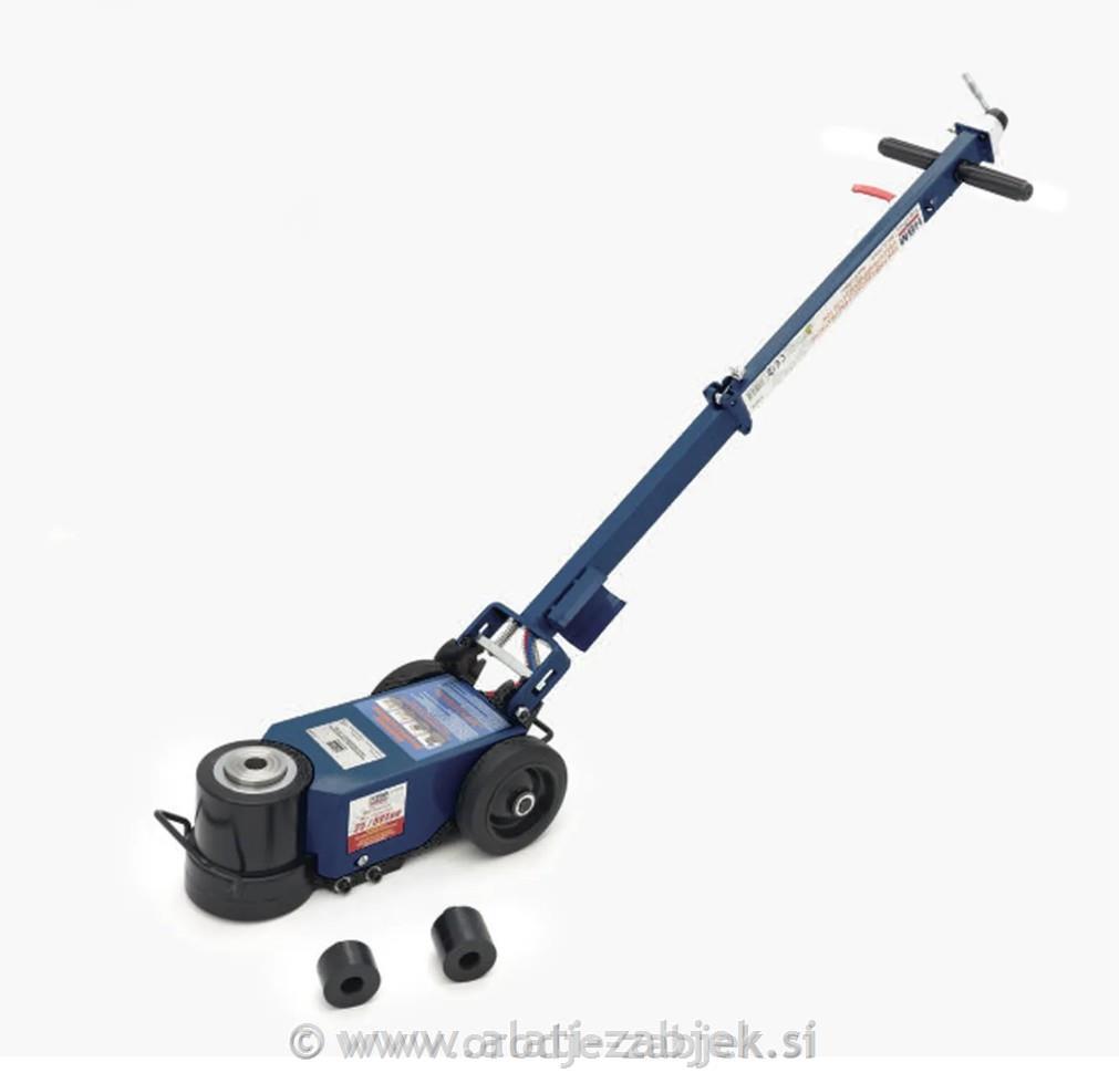 Profesionalna pnevmatska dvigalka za tovornjake, namenjena varnemu in učinkovitemu dvigovanju težkih vozil, kot so tovornjaki, avtobusi in kmetijska mehanizacija. Dvigalka je dobavljena z dvema trdnima, zložljivima podstavnima blokoma, ki zagotavljata stabilno in varno dvigovanje vozila.