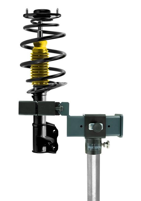 Vpenjalne čeljusti narejene iz POM (polioksimetilen) za preprečevanje poškodb opornika. 3 velikosti čeljusti (lahka vozila, lahka gospodarska vozila, zadnji amortizerji)