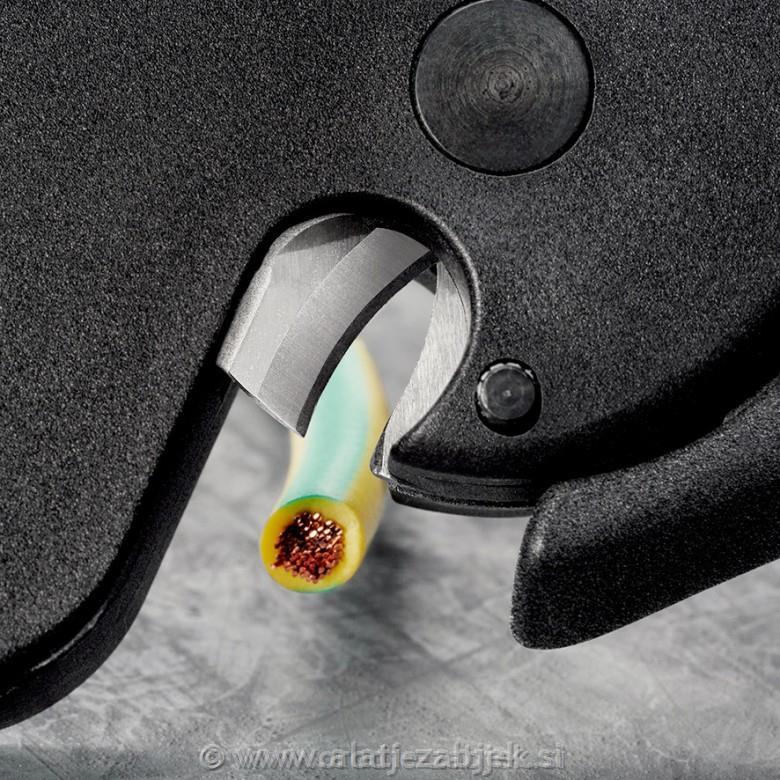 Natančno odstranjevanje izolacije: samodejno se prilagaja posameznemu premeru kabla in zagotavlja dosledne dolžine izolacije z nastavljivim omejevalnikom dolžine, zlasti pri ponavljajočem se delu.