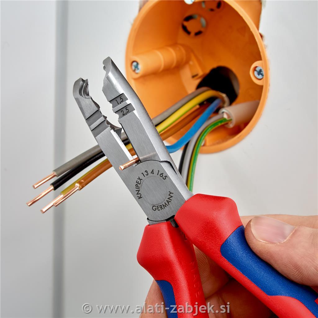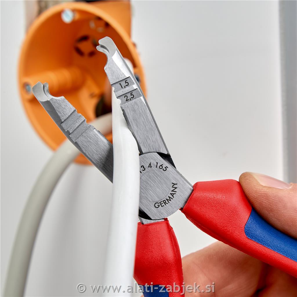 - za univerzalno uporabno: luknje za natančno odstranjevanje izolacije 0,75 - 1,5 in 2,5 mm²