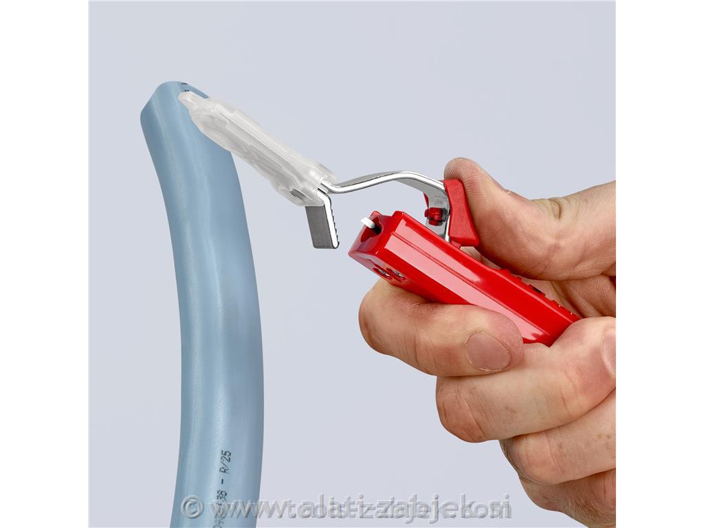 Opis proizvoda - za odstranjevanje vseh običajnih okroglih kablov - samozatezni zadrževalni nosilec - z nastavitvijo globine reza s pomočjo nastavitvenega vijaka - samovratno vlečno rezilo za obodne in vzdolžne reze - rezervno rezilo v ohišjuTehnični podatki: - dolžina: 165mm - teža: 85g