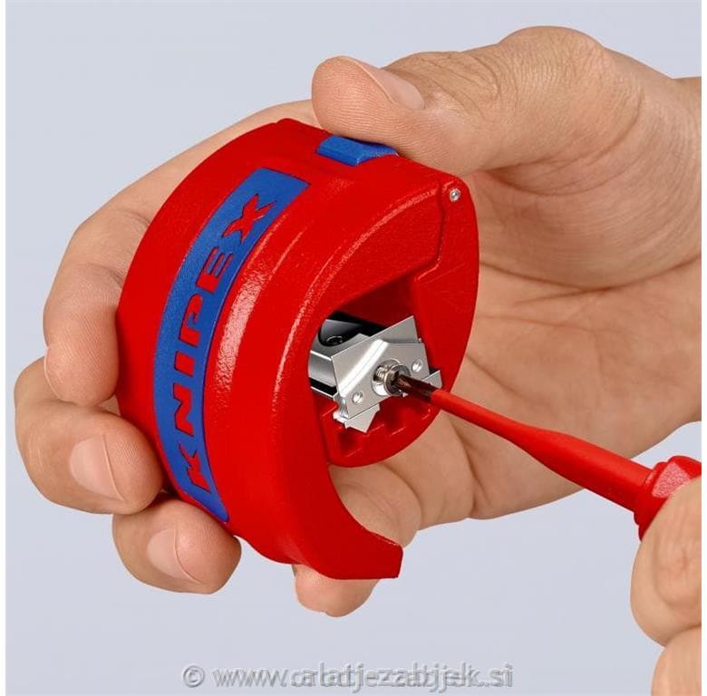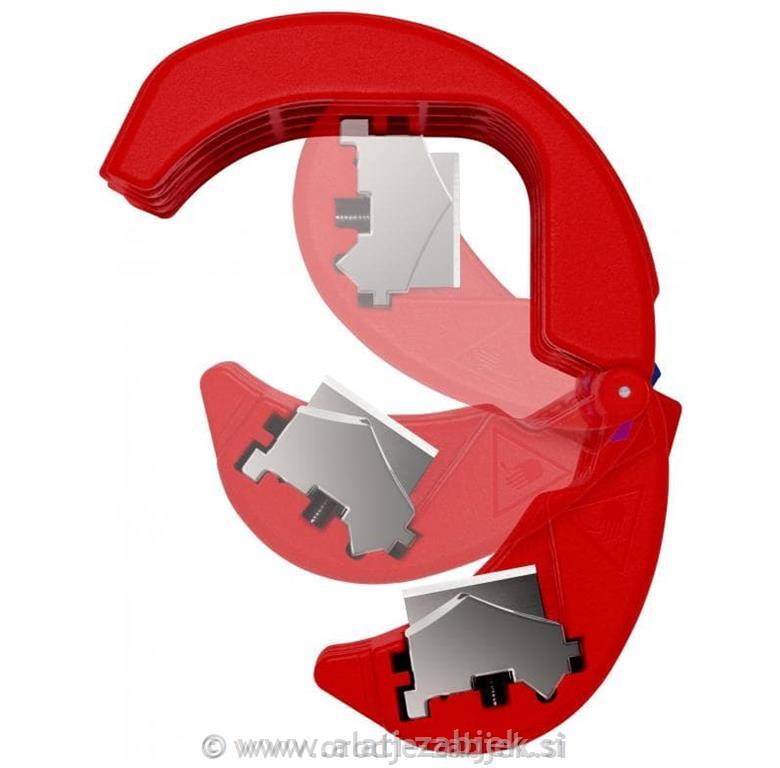 - vrtljivo držalo nožev za rezanje plastičnih cevi (rezilo na sredini) in tesnilnih rokavov (rezilo na robu)
