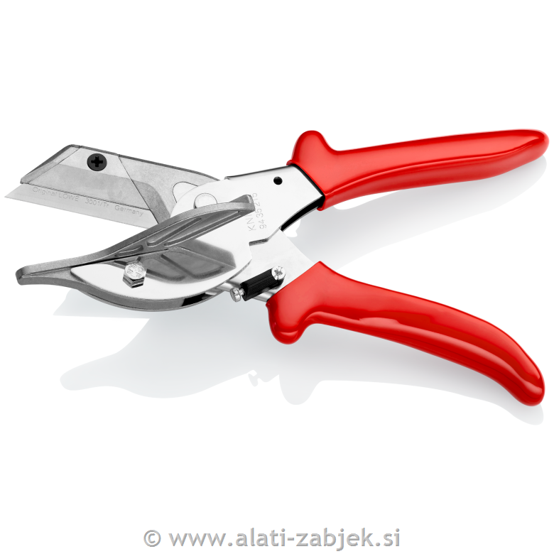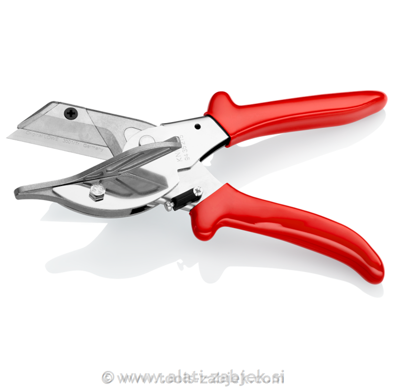 - zamenljiva rezalna podlaga s kotom za 45°-reze in oznake za 60°-, 75°- in 90°-reze