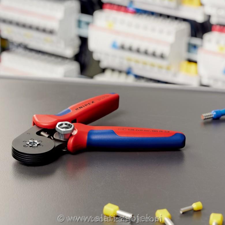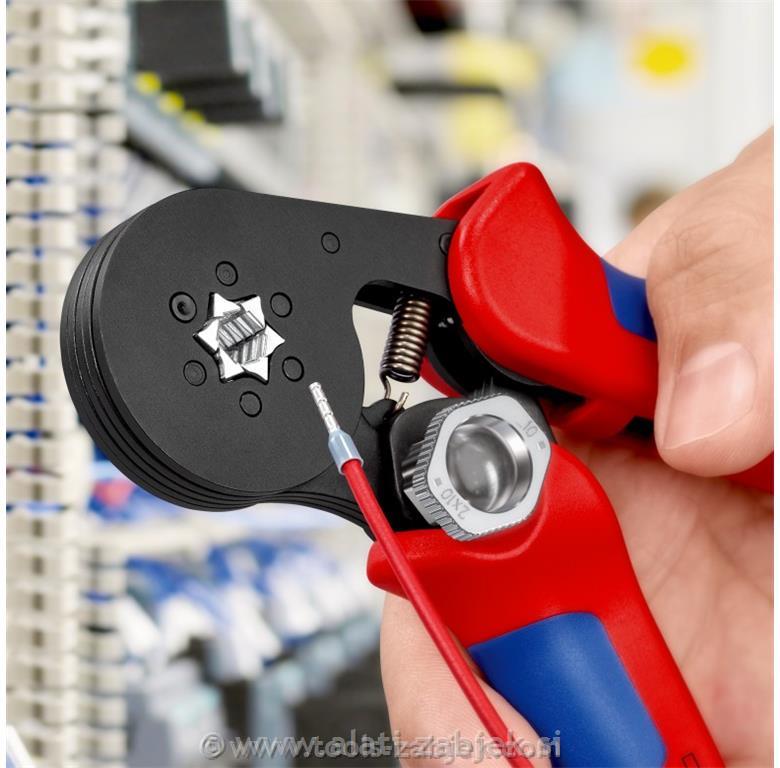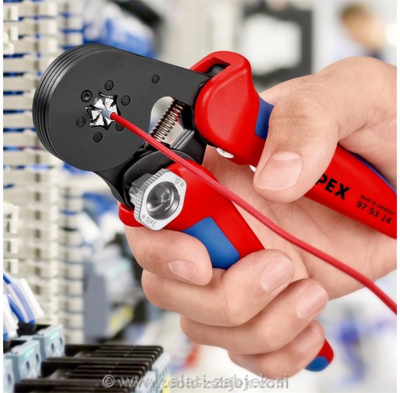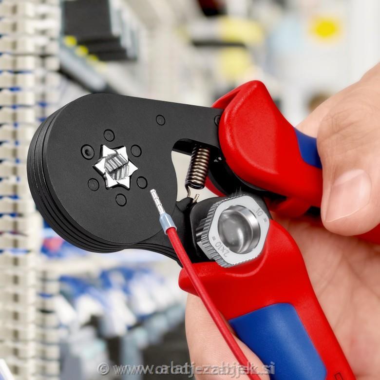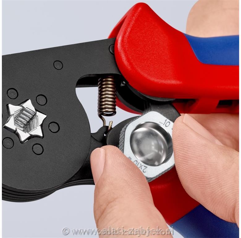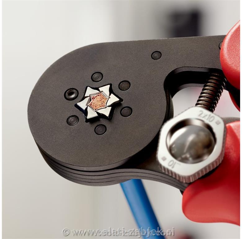 - zanesljivo šesterokotno stiskanje žičnih nastavkov od 0,08 do 16 mm² (AWG 6) s preprostim obračanjem in nastavitvijo nastavitvenega kolesa in vseh dvojnih žičnih obročev do 2 x 10 mm² (AWG 2 x 8).