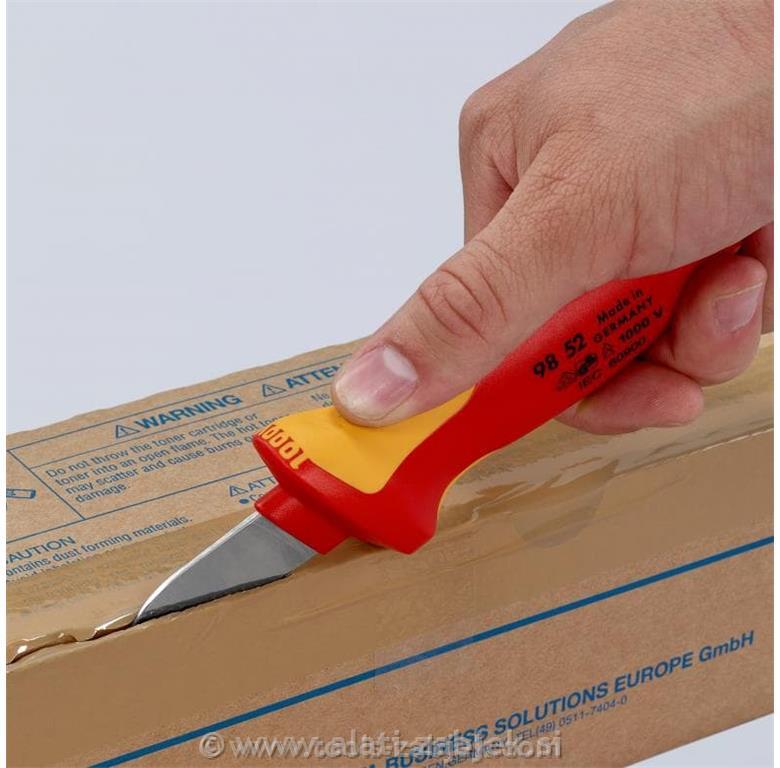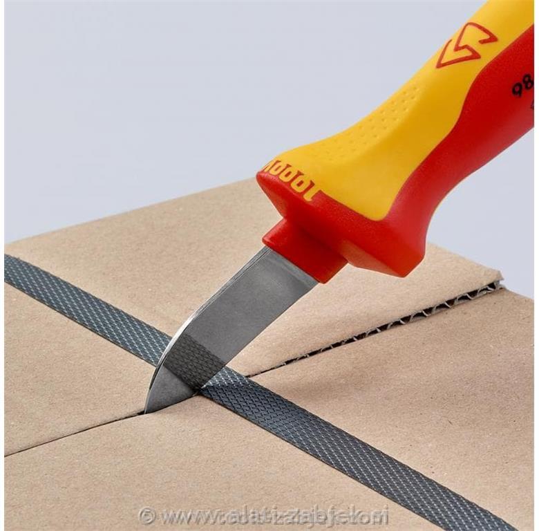 - Ergonomsko oblikovana oblika ročaja z udobno zaščito pred drsenjem. - Vdolbina palca in "kavelj za prste" na koncu ročaja zagotavljata dober prenos sile ob vlečenju rezila - Trdno, fiksno ravno rezilo - Prozorna zaščitna kapica - Rezilo: posebno orodno jeklo, kaljeno v olju