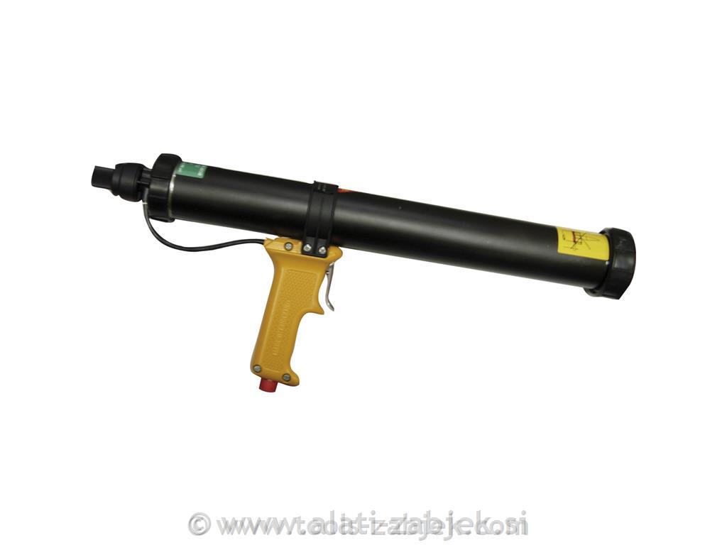 Visoko tehnološko zasnovana pištola s cevnim ohišjem je izdelana iz kakovostnega aluminija. Vsi oprijemljivi deli pištole so ergonomsko oblikovani, kar še dodatno olajšuje uporabo pri zahtevnih, dnevnih opravilih. Cevno ohišje s pomočjo zraka in regulatorja, omogoča zanesljivo praznjenje 600 ml vrečk . Pištola je posebej primerna tudi za iztiskanje visoko viskoznih, kakovostnih tesnilnih mas in lepil. Namenjena je strokovnjakom, ki potrebujejo kakovosten izdelek za dnevno uporabo, zlasti pri velikih količinah nanašanja tesnilnih mas, tako v proizvodnem procesu kot na objektih. Izdelek ima ob pravilni uporabi, dolgo življenjsko dobo.