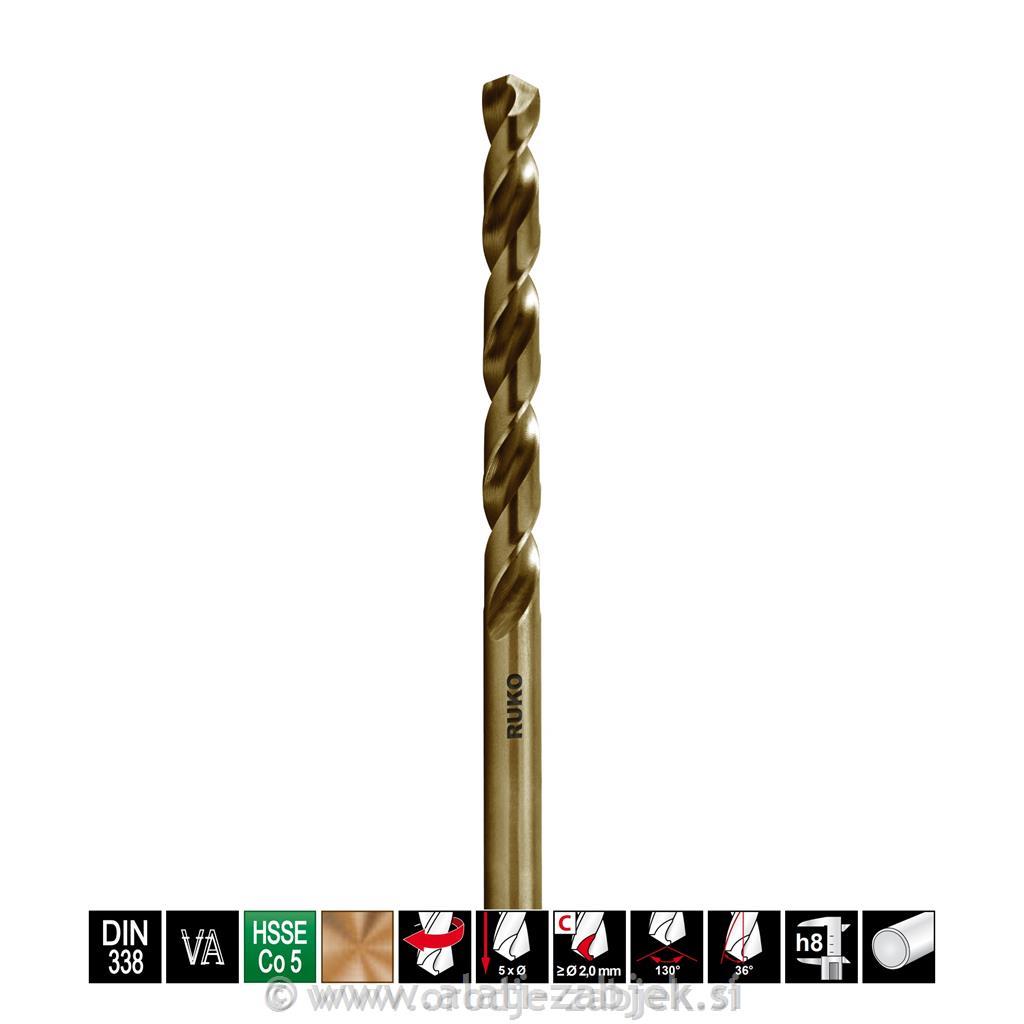 Spiralna svrdla DIN 338 tip VA, HSSE-Co5 RUKO
