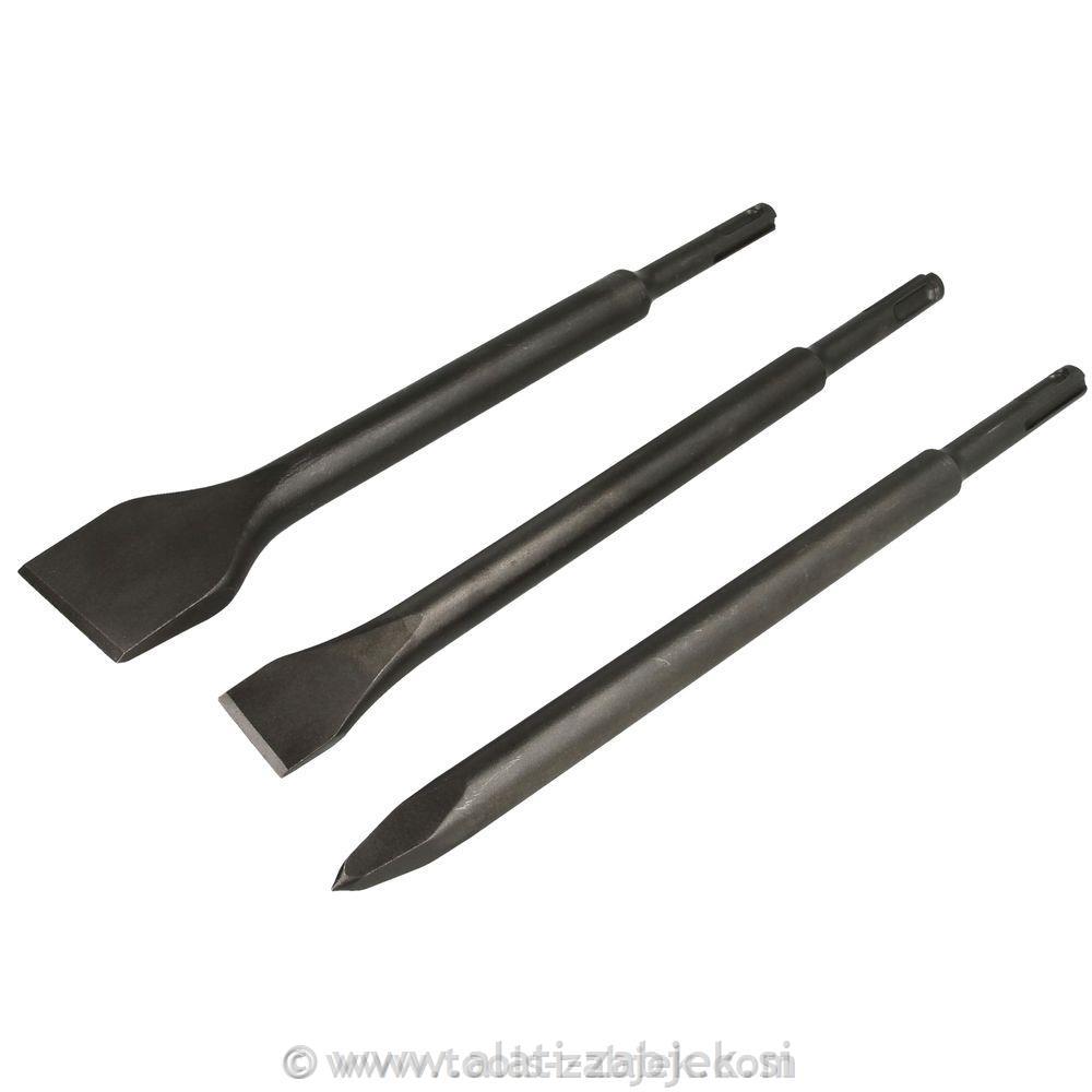 Opis proizvoda - komplet SDS plus za električna kladiva Set vsebuje: - 1 ravno dleto 250 mm (art. Št. 212 25000) - 1 koničasto dleto 250 mm (art. Št. 212 25001) - 1 lopatica 250 mm, širina 40 mm (art. Št. 212 25014) - teža: 850 g