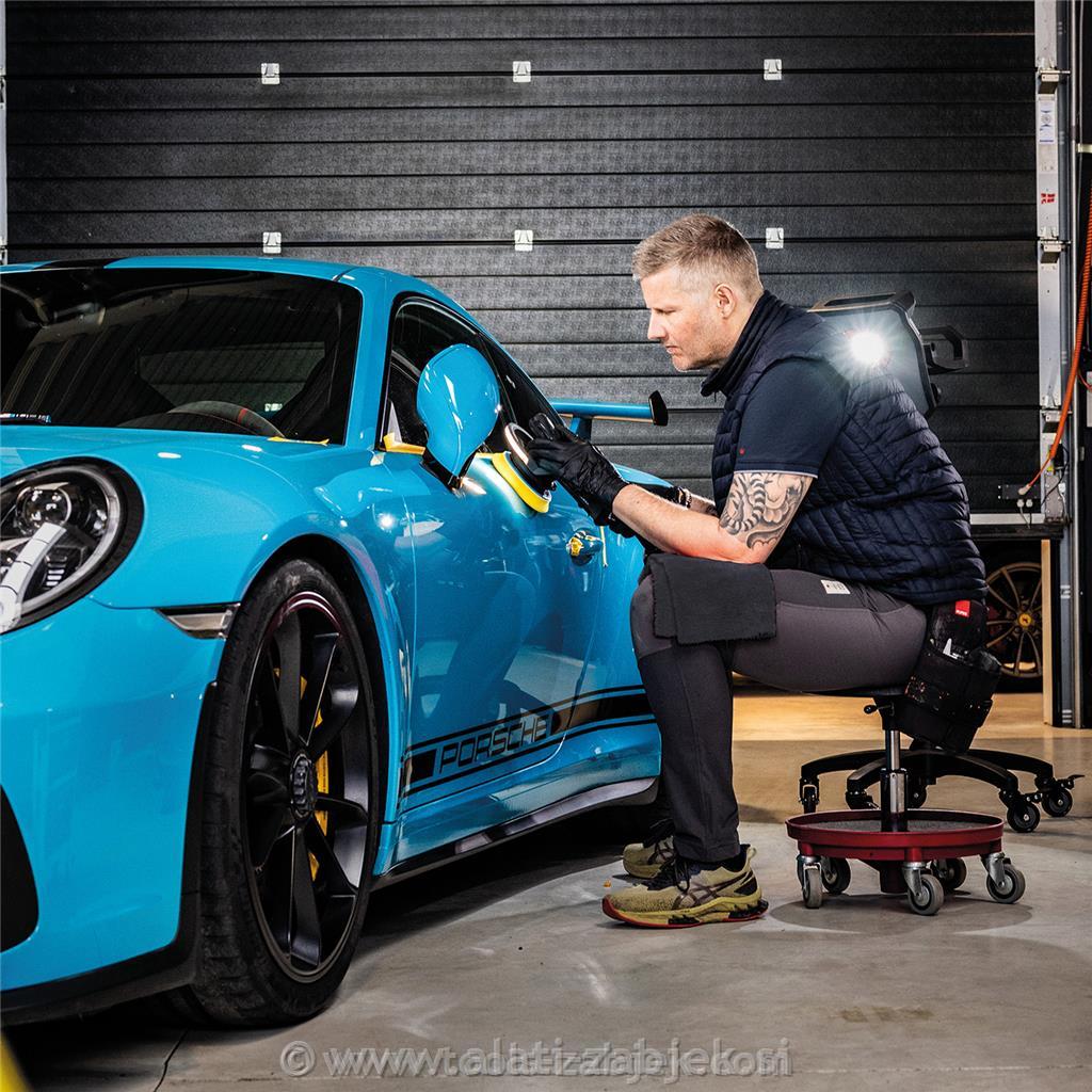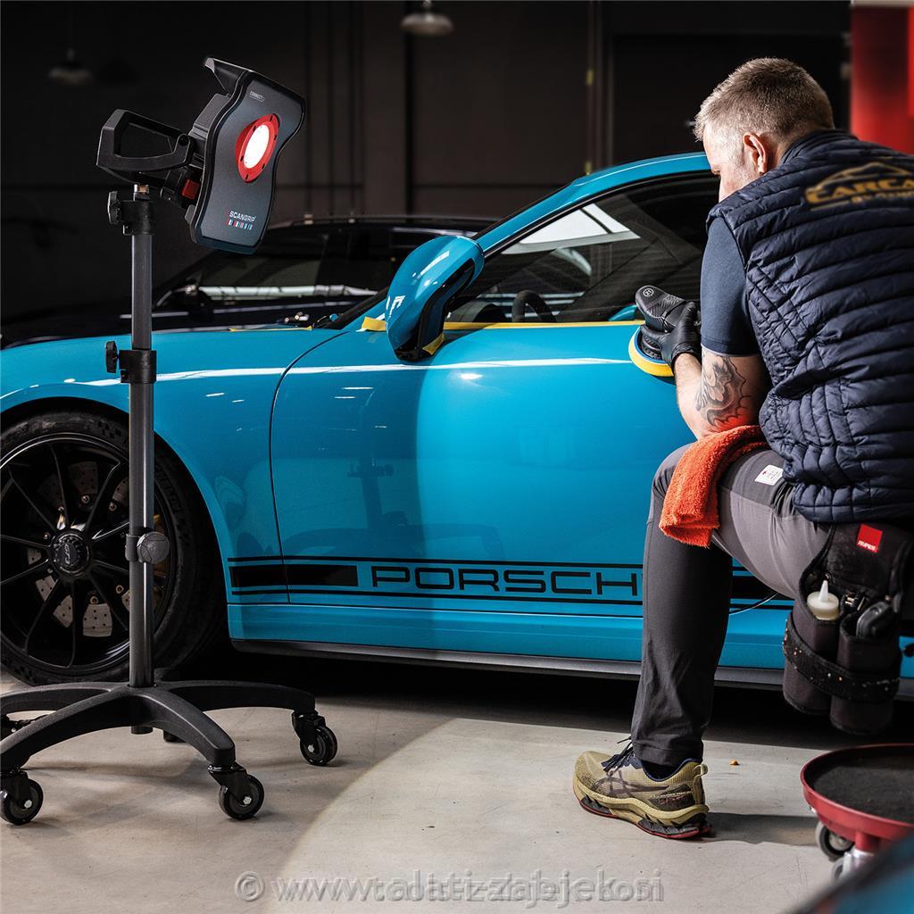 Dvignite korekcijo laka na višjo raven z edinstveno delovno svetilko z visoko vrednostjo CRI+, ki se neposredno pritrdi na vašo polirko. Popolnoma ukrivljen svetlobni snop in zamenljiva baterija zagotavljata idealne pogoje za obsežna in zahtevna polirna dela.