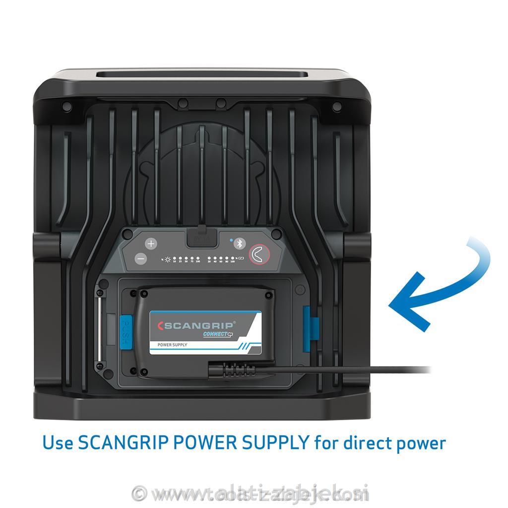 Kot edinstvena lastnost je NOVA 10 CONNECT združljiv z baterijskim sistemom METABO/CAS 12V 4,0 Ah - 18V 5,2 Ah in vsemi drugimi 18V baterijami vodilnih znamk električnih orodij z uporabo PRIKLJUČKA SCANGRIP. Poleg tega lahko napajalnik SCANGRIP uporabite za neposredno napajanje, ki zagotavlja neomejeno razpoložljivost svetlobe. NOVA 10 CONNECT ima tudi notranjo rezervno baterijo, ki zagotavlja 1 dodatno uro pri 1000 lumnih.