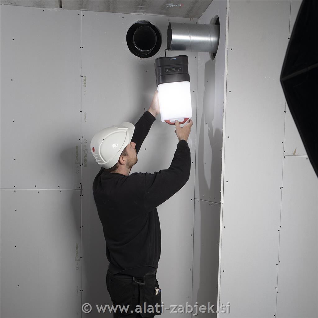 AREA 10 CONNECT zagotavlja razpršeno in enakomerno svetlobo do 10.000 lumnov, kar je idealno za profesionalnega uporabnika, ki potrebuje močno in učinkovito osvetlitev celotnega delovnega območja pri izvajanju kakršnih koli popravil, barvanja ali gradbenih del.