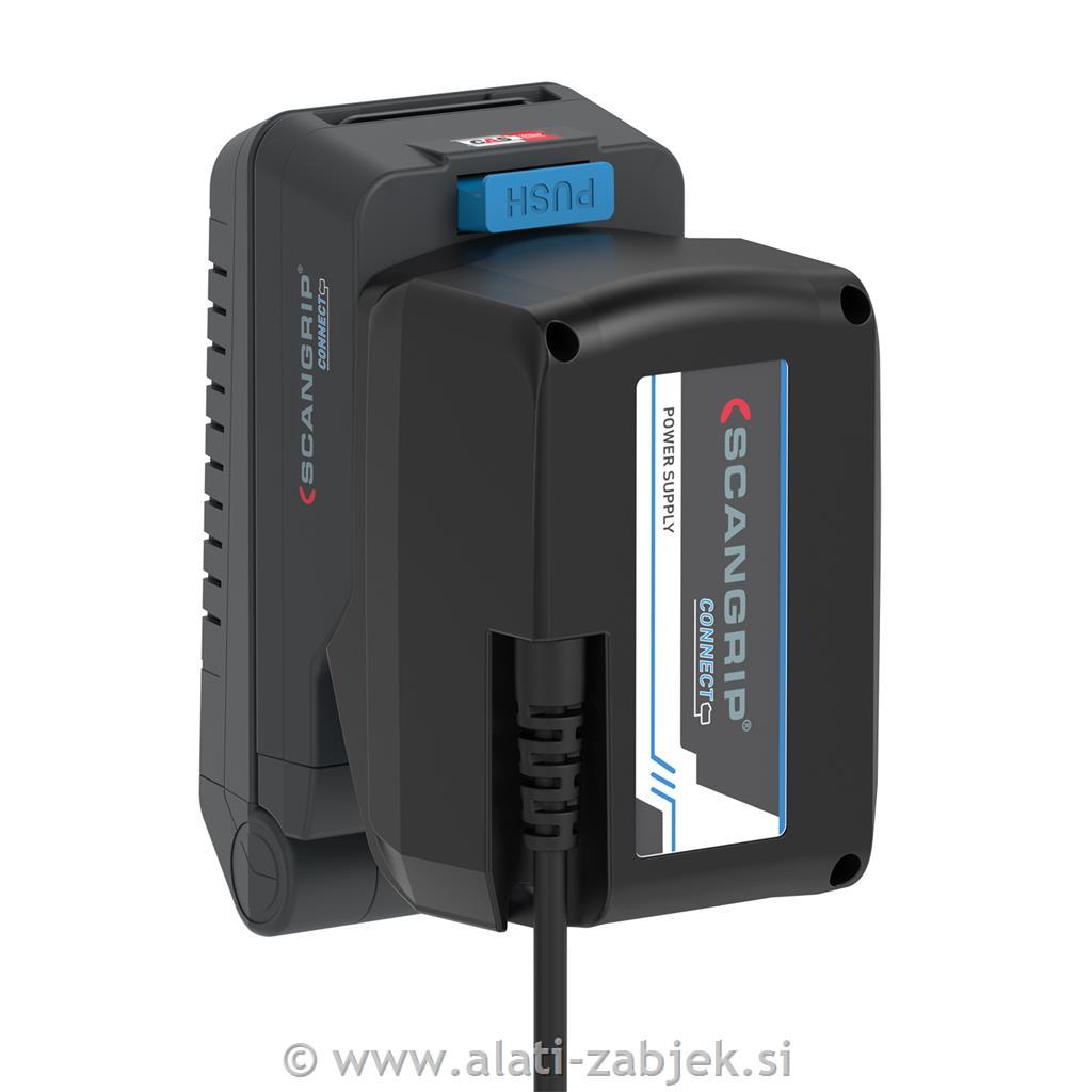 BASIC CONNECT je združljiv z baterijskim sistemom METABO / CAS 18 V in vsemi drugimi 18 V/20 V baterijskimi sklopi vodilnih znamk električnih orodij z uporabo PRIKLJUČKA SCANGRIP. Poleg tega lahko napajalnik SCANGRIP POWER SUPPLY uporabite za neposredno napajanje, ki zagotavlja neomejeno razpoložljivost svetlobe.