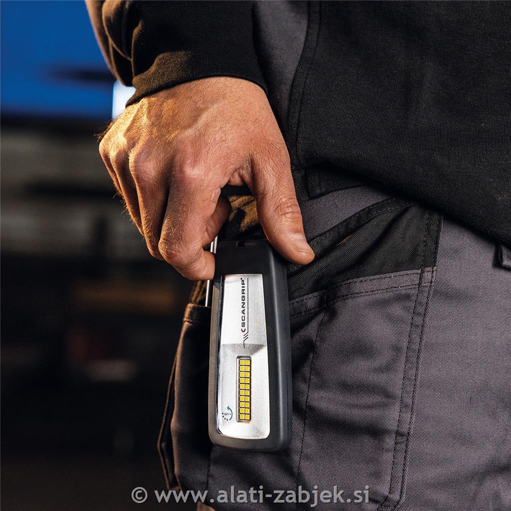 Delovna svetilka MINIFORM je opremljena z vgrajenim magnetom in kljukico za prilagodljivo namestitev ter s sponko za priročno nošenje na pasu. Njena ergonomska oblika omogoča udoben oprijem, enostavno shranjevanje v žep in hitro dostopnost.