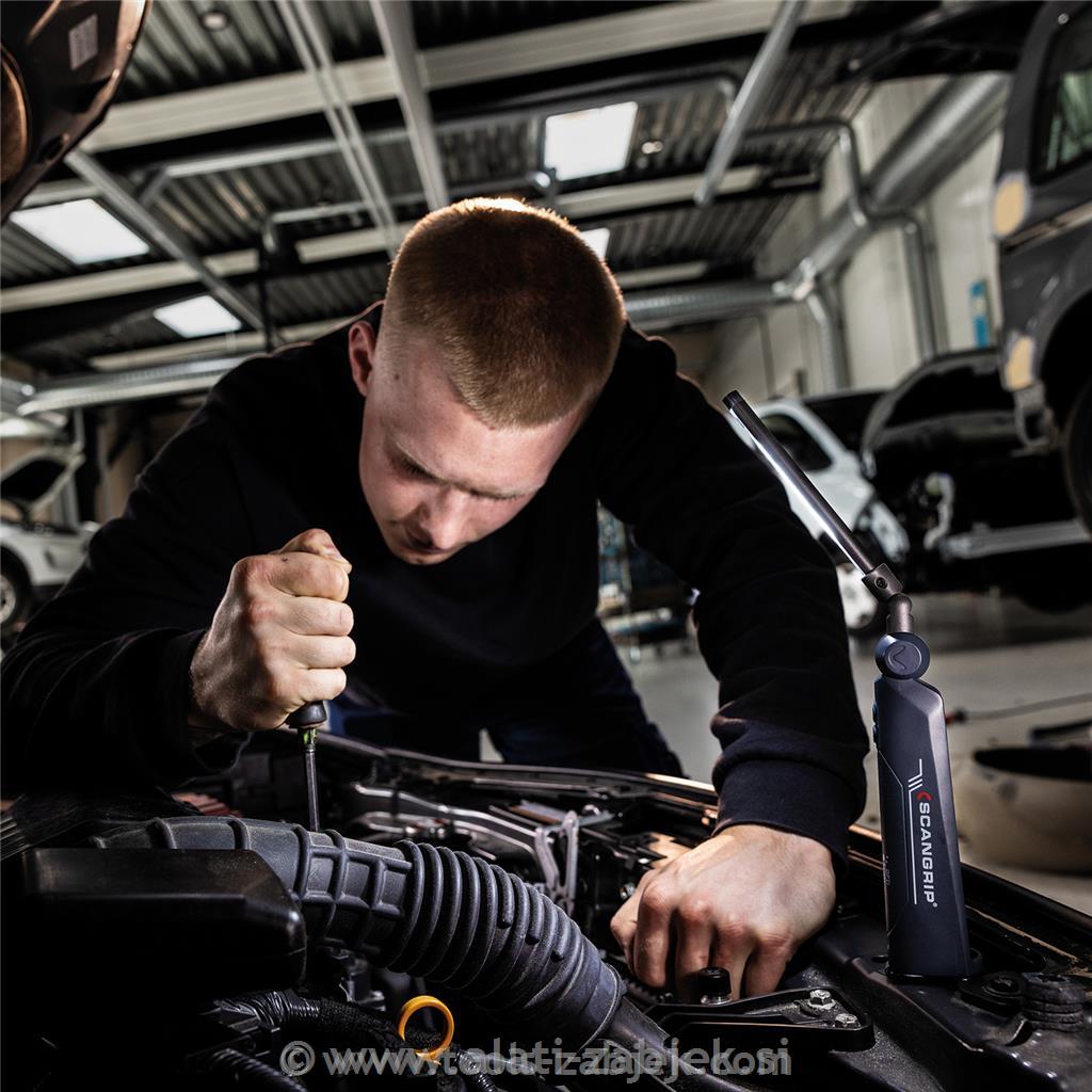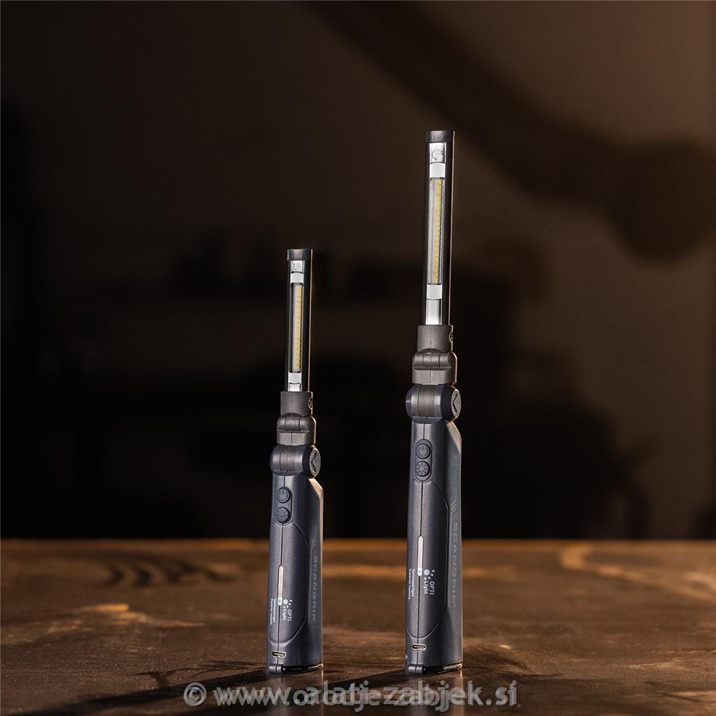 Ta LED delovna svetilka je opremljena z vgrajenim magnetom in kavljem ter ima 100 % pregibno ohišje, kar omogoča prilagodljivo postavitev v vsakem delovnem okolju. Oblikovana je za uporabo kot ročna svetilka, a zahvaljujoč kompaktni zasnovi jo lahko vzamete kamorkoli. Ko je zložena, se zlahka spremeni v ročno svetilko z varnim oprijemom.