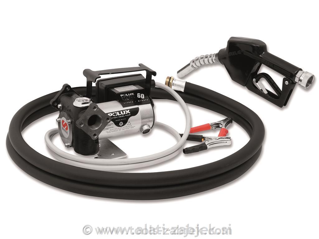 - prenosni komplet s črpalko serije Polux s 24 VDC, dovodno cevjo, šobo, merilnikom, spojkami in sesalnim kompletom, odvisno od modela