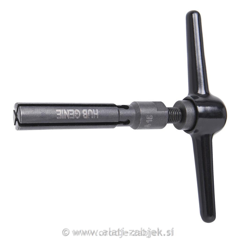 Hub Genie je edinstvena rešitev za odstranjevanje končnih pokrovčkov pesta med servisiranjem pest ali njihovo pretvorbo v različne standarde. Zahvaljujoč razširitvenemu mehanizmu, ki enakomerno zagrabi pokrov pesta od znotraj, je tudi najbolj trdovratne pokrovčke pesta enostavno odstraniti. V primerjavi s tradicionalnim načinom odstranjevanja pokrovčkov pesta to orodje ne poškoduje skodelic ali pest. Set je opremljen s plastičnim kratkim ročajem za boljšo ergonomijo in oprijem.