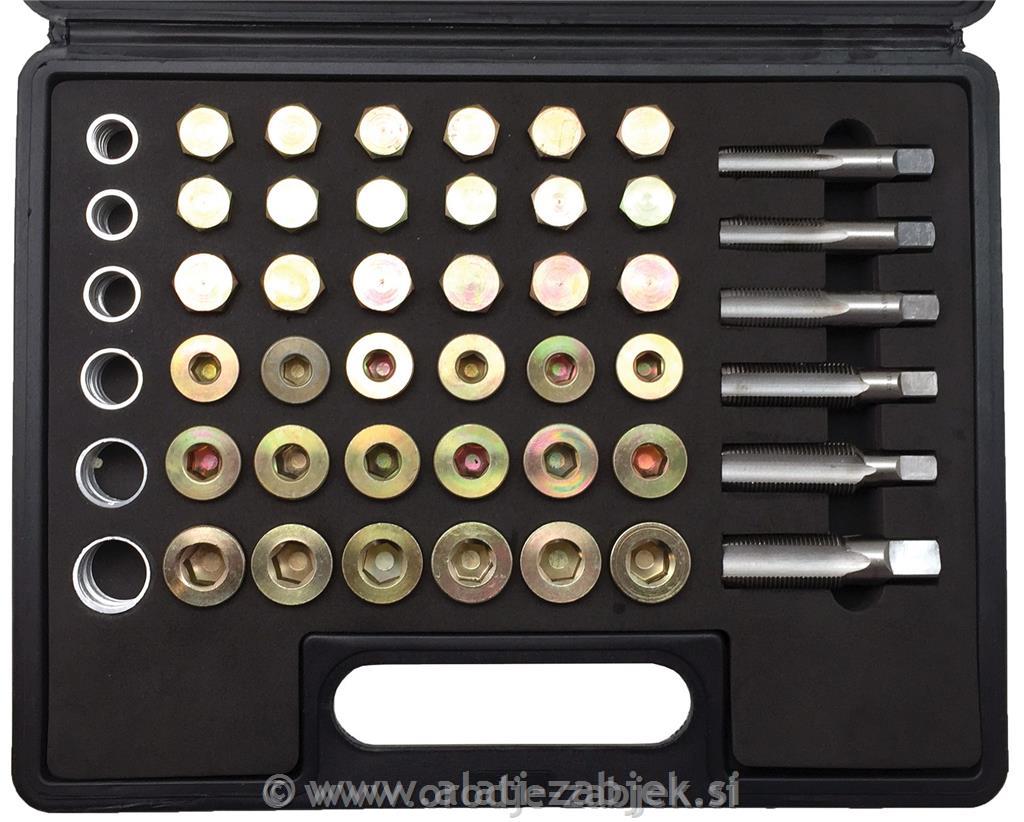 - ta celovit komplet je bil zasnovan za popravilo poškodovanih navojev v oljnem koritu