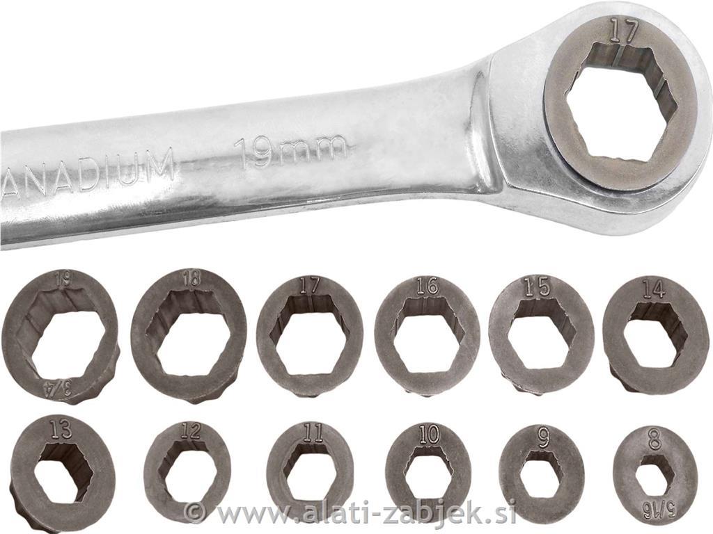 Velikosti: 8, 9, 10, 11, 12, 13, 14, 15, 16, 17, 18, 19 mm.
