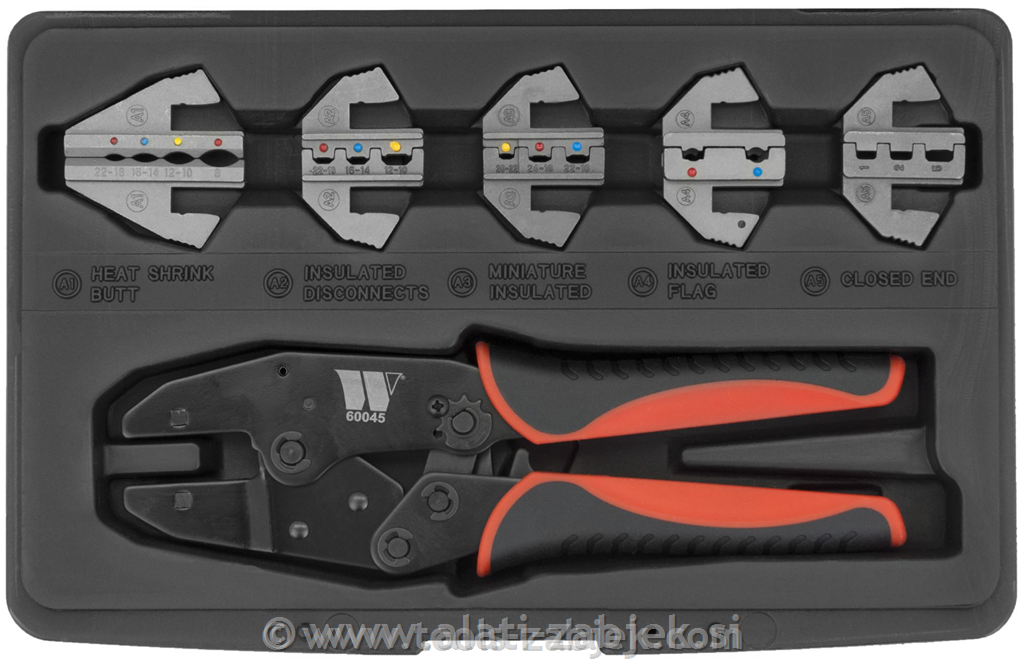 - komplet orodja za stiskanje z zaskočno funkcijo in nastavljivimi čeljustmi