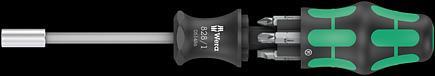 Opis proizvoda Kompaktno orodje Wera z večkomponentnim ročajem Kraftform za visoke delovne hitrosti in posebno ergonomsko vijačenje. Nabojnik za nastavke, vgrajen v ročaj, 6 močnih nastavkov za univerzalno uporabo. Držalo za nastavke z močnim trajnim magnetom za varno namestitev nastavka.