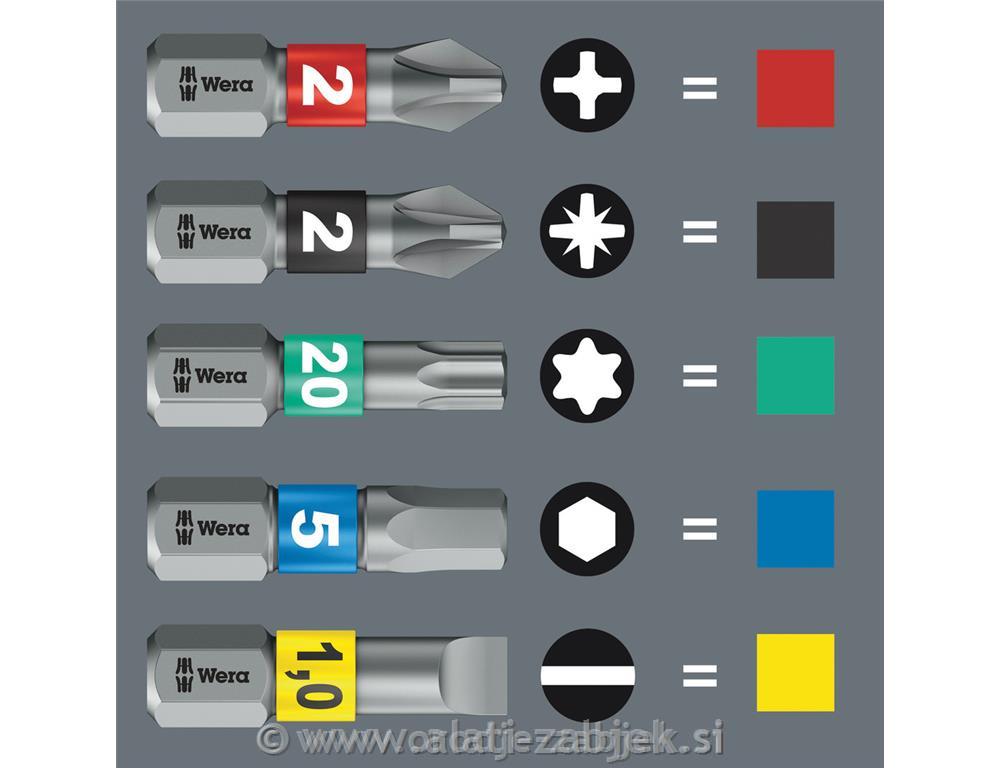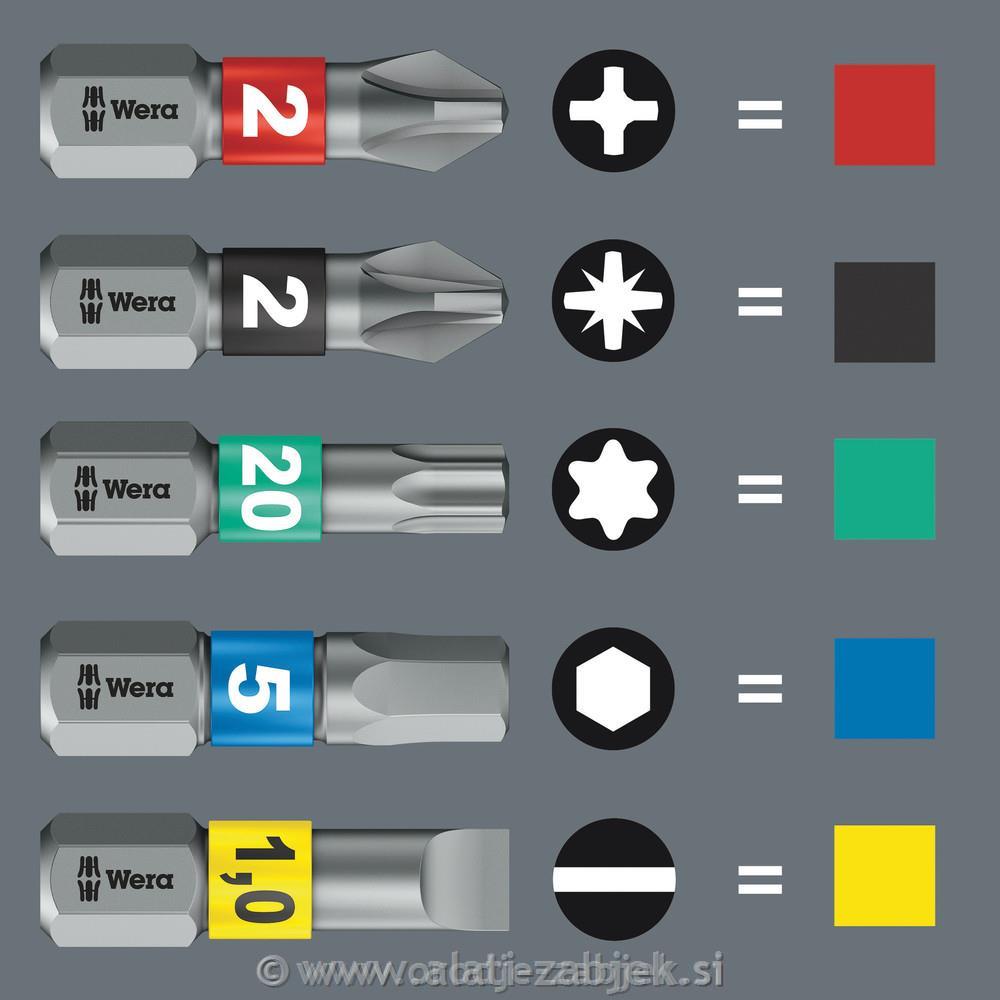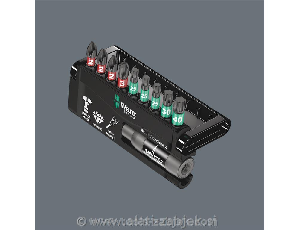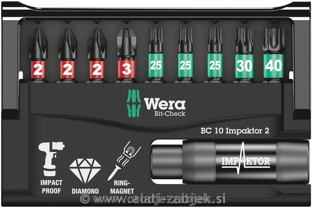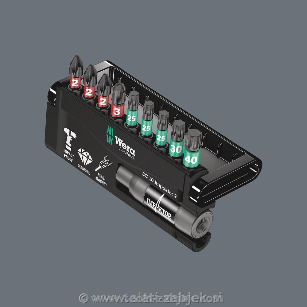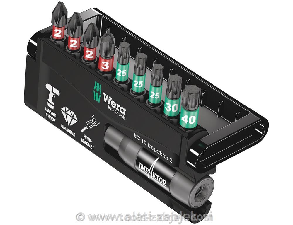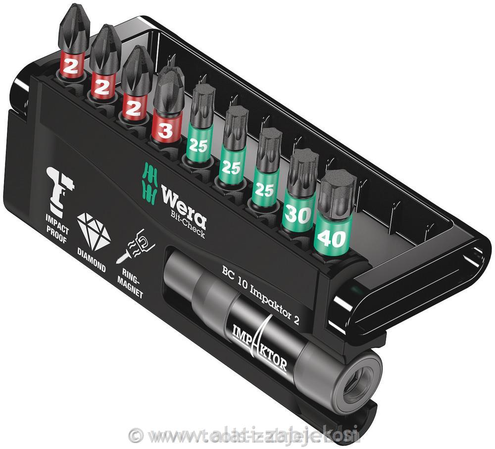 - 10-delni set bit nastavkov Wera Impaktor so urejeni v majhnem in priročnem nosilcu