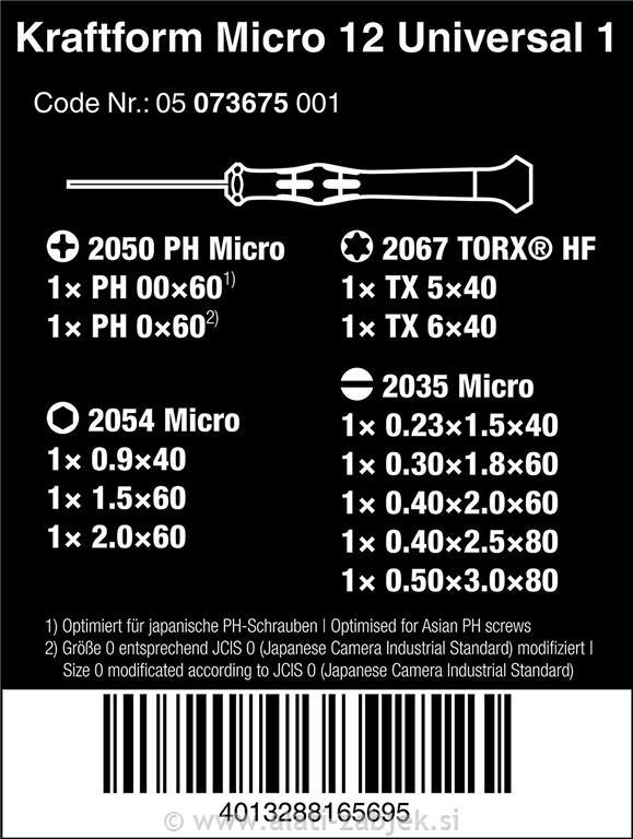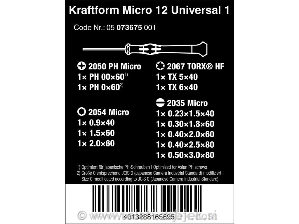 12-dijelni set preciznih odvijača Kraftform Micro WERA