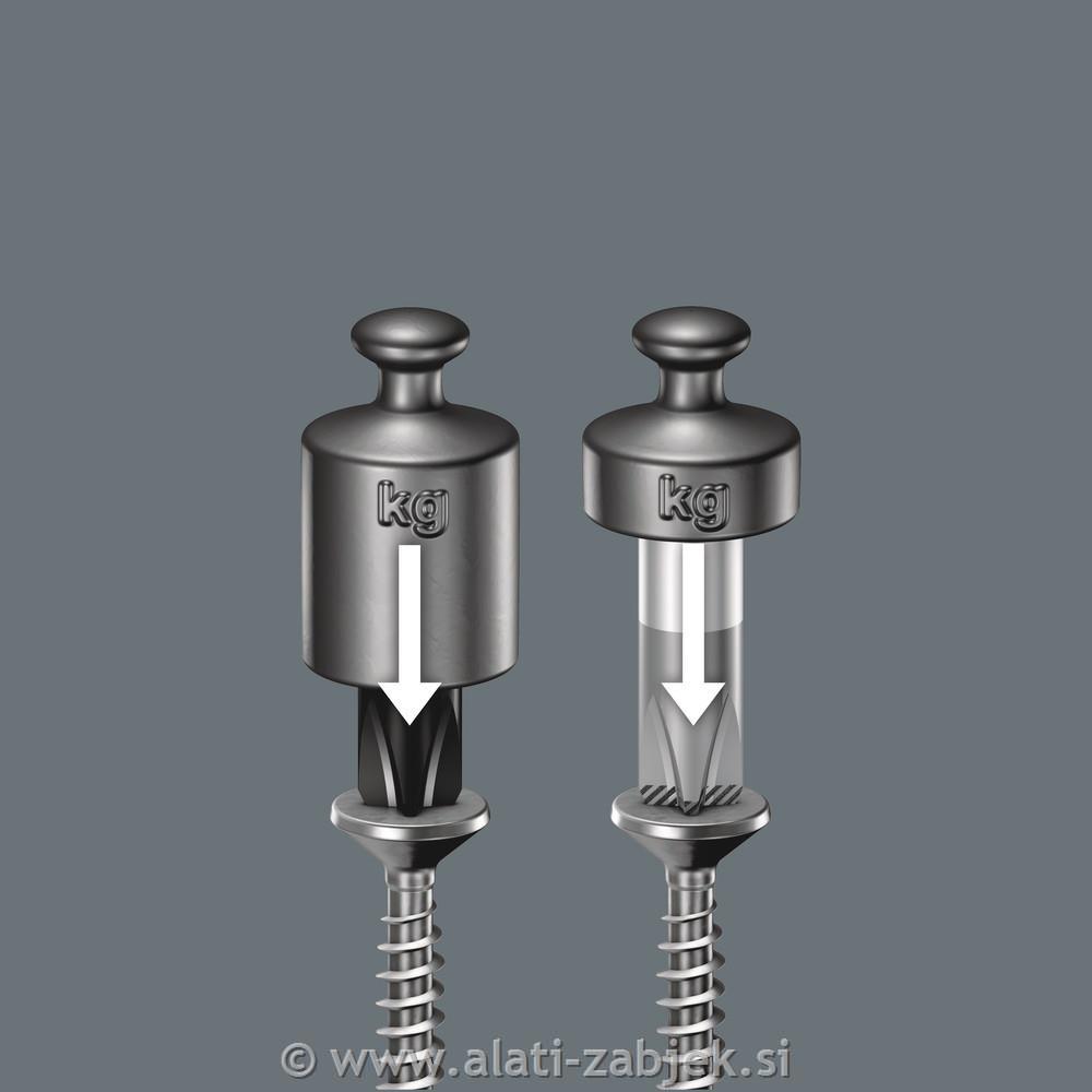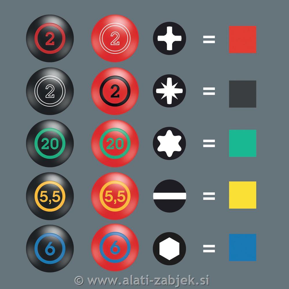 - identifikacija ročaja s simbolom vijaka in velikostjo profila olajša iskanje izvijača v kovčku z orodjem in na delovnem mestu