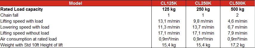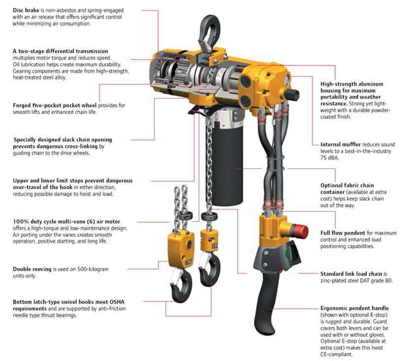 - dizalica je opremljena glavnim zračnim isključivanjem u nuždi te spremnikom za lanac